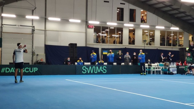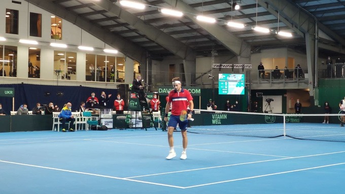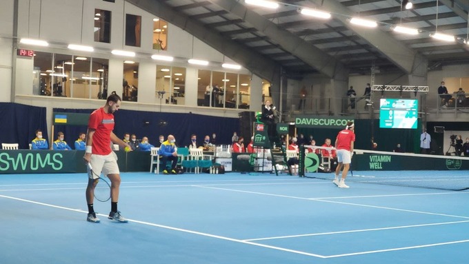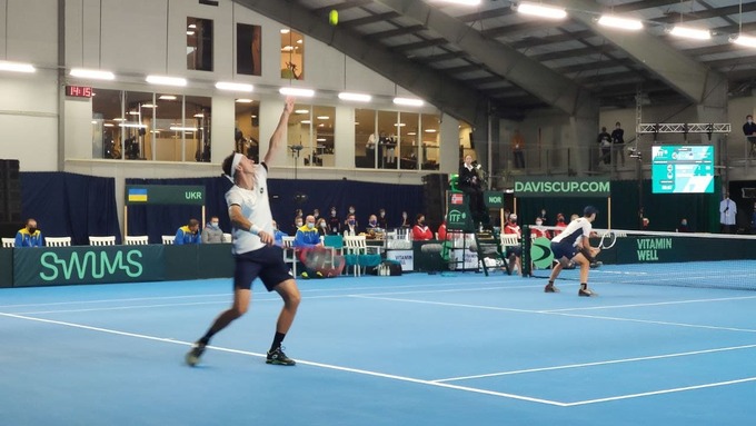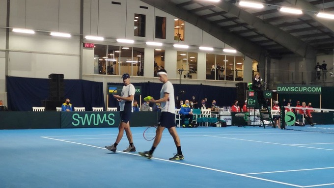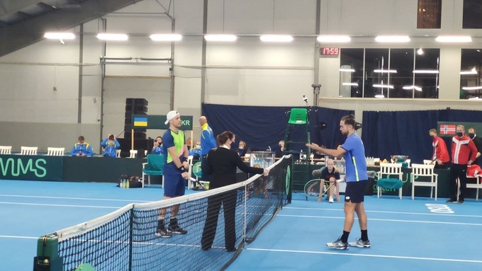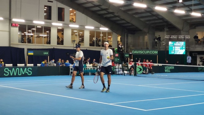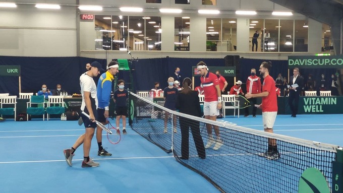 16:28. Украина выиграла парный матч: Виктор Дурасович / Каспер Рууд – Денис Молчанов / Сергей Стаховский – 6:7 (4:7), 3:6.