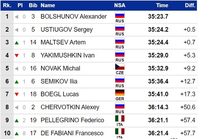 Ситуацией сполна воспользовалась сборная России, которая заняла первые четыре места. Победителем стал Александр Большунов, который перехватил лидерство в общем зачете Кубка мира.