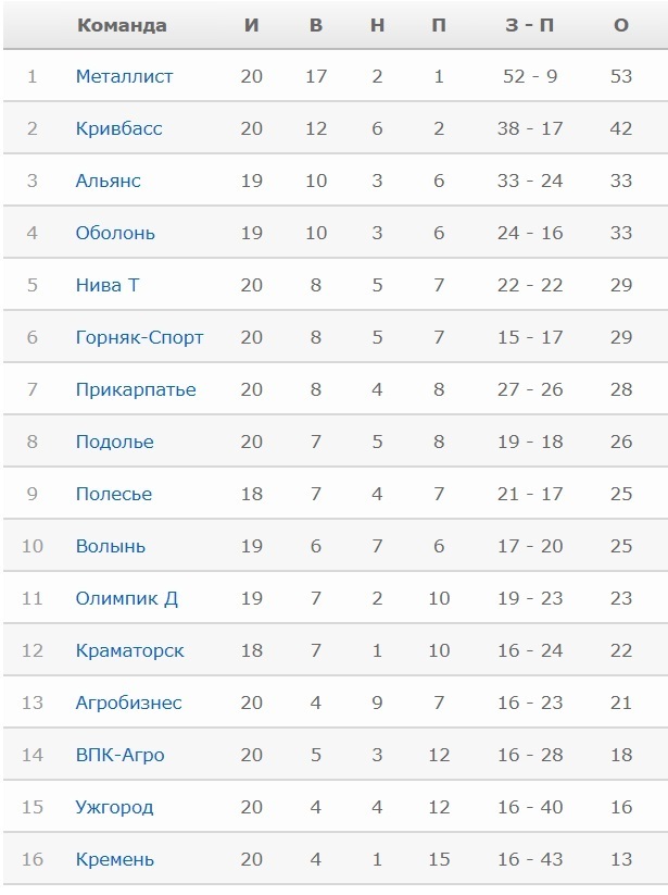 «Металлист» ушел на зимний перерыв в статусе лидера дивизиона, имея преимущество над «Кривбассом», которое составляет 11 очков.