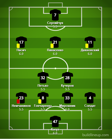 69 мин. Кучеров, Сергийчук и Панасенко покинули поле, вместо них вышли Полулях, Гегедош и Шестаков.