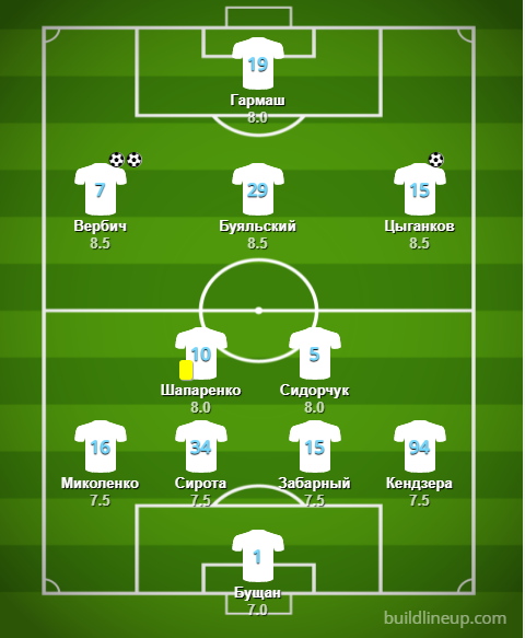 «Динамо»: Бущан, Сидорчук, Вербич (Де Пена, 86), Шапаренко, Цыганков (Караваев, 86), Миколенко, Гармаш (Кулач, 79), Забарный, Буяльский (Леднев, 88), Сирота, Кендзера (Тимчик, 78)