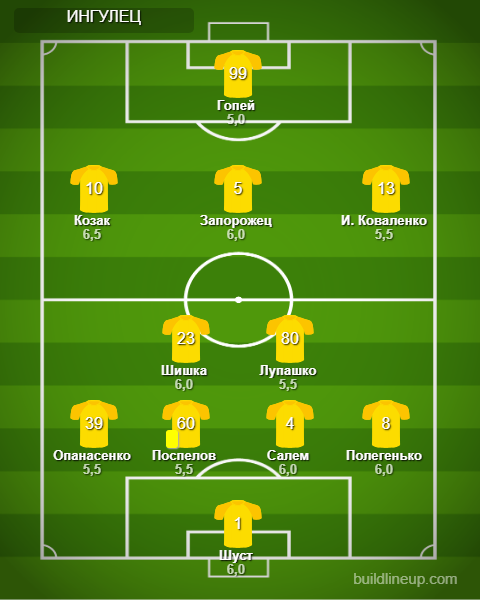 Замены «Ингульца»: Плохотнюк - 5,0, Головкин - б/о.
