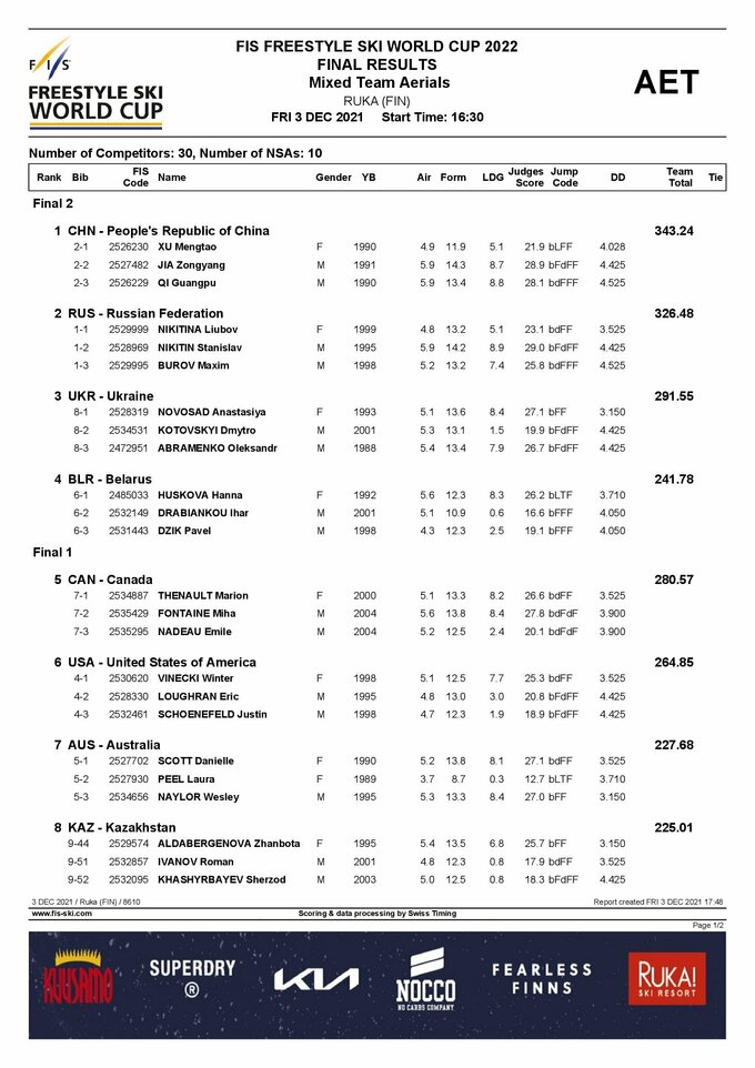 Українські фристайлісти Олександр Абраменко, Дмитро Котовський та Анастасія Новосад здобувають бронзову нагороду у міксті (змаганнях змішаних команд) на Кубку світу з лижної акробатики, що проходить у Фінляндії. pic.twitter.com/hNHk3oBKeM