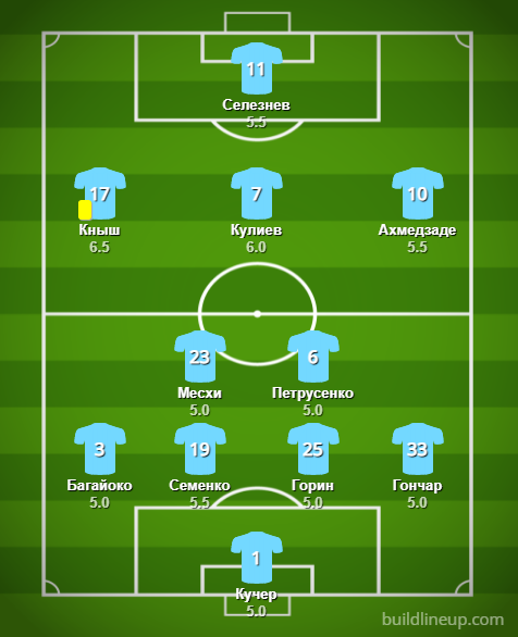 57 мин. Кулиев в штрафной головой пробил в руки Билыка после навесной передачи с правого фланга от Гончара.