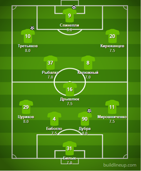Запас: Пеньков, Матич, Векляк, Байдал, Вишневский