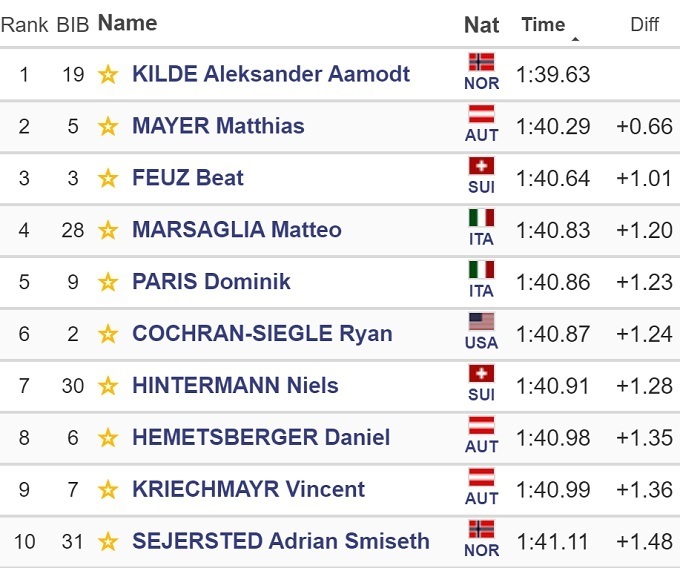 Норвежский горнолыжник Александер Омодт Килде выиграл скоростной спуск на этапе Кубка мира в американском Бивер Крике. Для него это вторая победа подряд – вчера он выиграл супергигант.