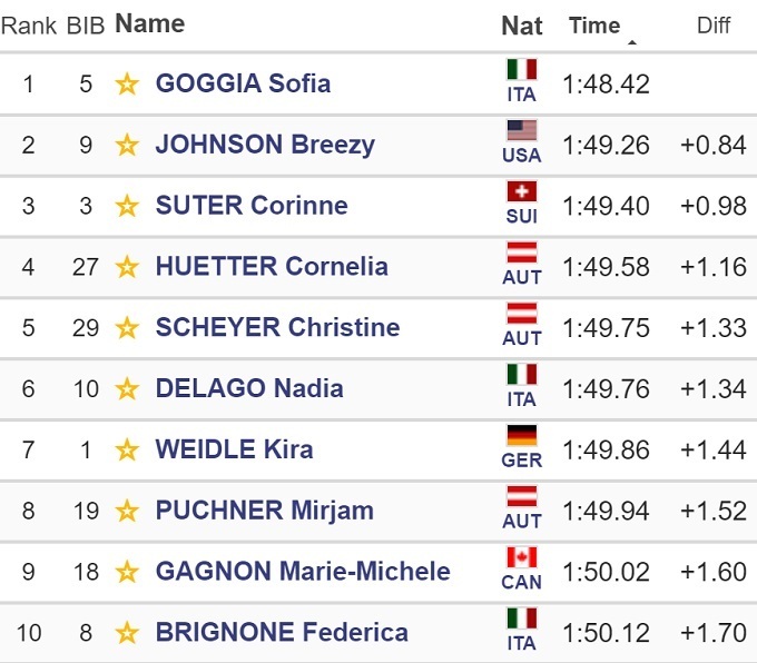Горные лыжи. Годжа выиграла шестой скоростной спуск подряд