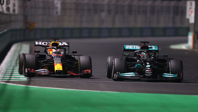 Макс Ферстаппен уже на Гран-при Саудовской Аравии мог оформить титул, но неудача пилота в квалификации явно добавляла сил Льюису Хэмилтону, который стартовал с поула и был прикрыт от Ферстаппена напарником Валттери Боттасом.
