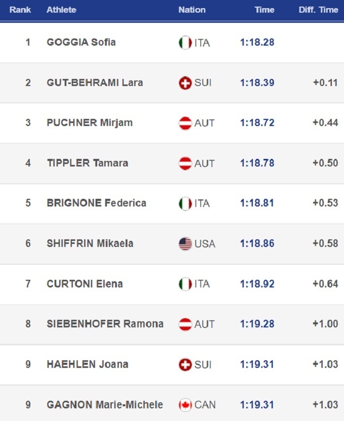Итальянская горнолыжница Софья Годжа выиграла первый супергигант нового сезона Кубка мира. Таким образом, Годжа выиграла все три старта в Лейк Луисе – ранее она победила в двух скоростных спусках.