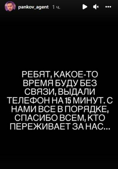 Панков написал на своей странице в Instagram: «Ребята, какое-то время буду без связи. Выдали телефон на 15 минут. С нами все в порядке, спасибо всем, кто переживает за нас».