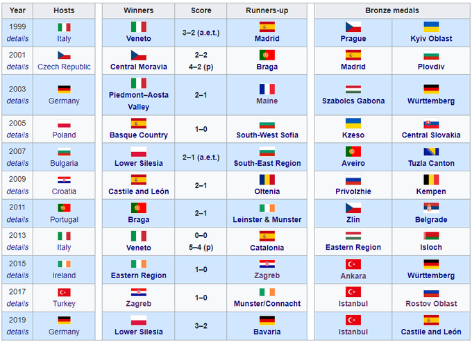 История Кубка регионов УЕФА. Все победители, призеры и финалы