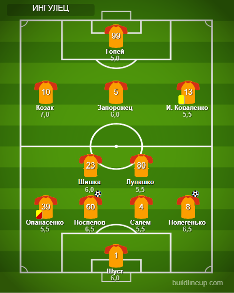 Замены «Ингульца»: Бартулович - 6,0, Смоляков - 6,0, Коробенко - б/о.