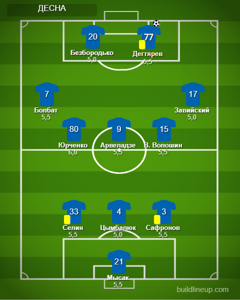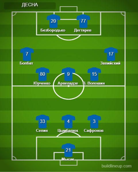 «Десна»: Мысак - Сафронов, Цымбалюк (Будкивский, 46), Селин - Завийский, В. Волошин, Арвеладзе (Картушов, 69), Юрченко, Болбат - Дегтярев, Безбородько (Шевцов, 75).
