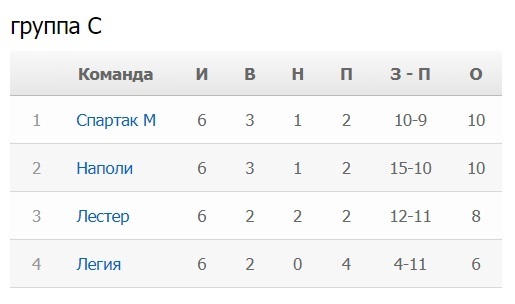 Московский клуб набрал одинаковое количество очков с «Наполи», но опередил неаполитанцев за счет лучших результатов в очных встречах (две победы российской команды).