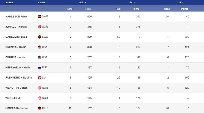 Шведка, к слову, финишировала третьей, проиграв еще и Джессике Диггинс. Второй подиум в сезоне для американки, однако провести две подряд гонки на топ-уровне ей пока не удается: в Лиллехаммере она, наоборот, стала второй в спринте, но слабо выступила в разделке. Так или иначе, действующая обладательница Кубка мира явно прогрессирует после неудачного старта сезона в Руке.