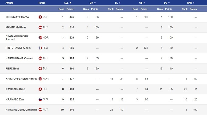 А все благодаря тому, что Одерматт выиграл второй подряд гигант и одержал суммарно уже третью победу в нынешнем сезоне. Пинтуро стал вторым с отставанием в 0,59 секунды, при том, что выдал две действительно классные попытки без серьезных ошибок. Алексис даже в своих лучших заездах не может справиться со скоростью Одермата, и это не может не беспокоить его. Сам же Марко заявил, что планирует пропустить скоростной спуск в Валь Гардене на следующей неделе, чтобы лучше подготовиться к двум гигантам в Альта-Бадии. С такой ситуацией в общем зачете швейцарец может себе это позволить.