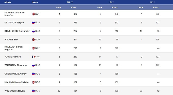 Из важных новостей отметим, что падение Кьетиля Янсруда в Бивер Крике не прошло бесследно: норвежец получил разрыв связок колена и выбыл до конца сезона. Несмотря на это, 36-летний норвежский ветеран уже заявил, что завершать карьеру не планирует и вернется в следующем сезоне. Проблемы со спиной у Штефана Лутца – он пропустит несколько недель и вернется уже после нового года.