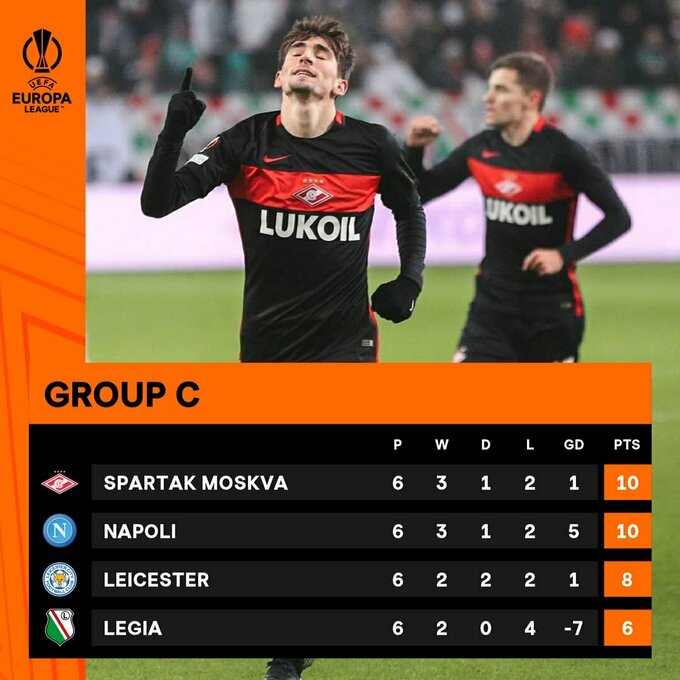 - Легия (Польша) – Спартак (Россия) – 0:1