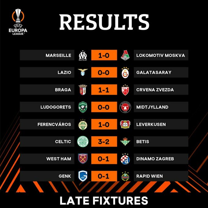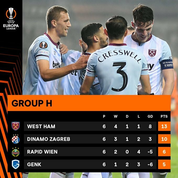 - Вест Хэм (Англия) – Динамо Загреб (Хорватия) – 0:1