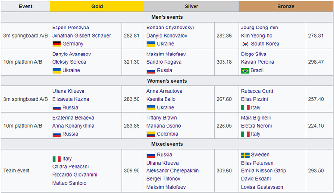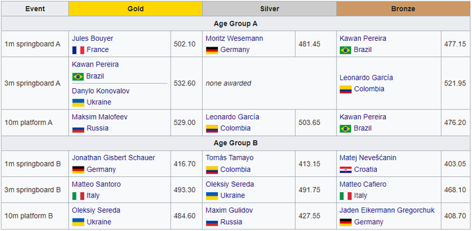 6 декабря Алексей Середа стал чемпионом мира на коронной 10-метровой вышке, а 7 декабря он же, самый юный украинский участник взрослых Олимпиад, завоевал серебро на 3-метровом трамплине.