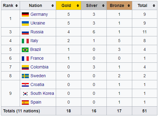 Сборная Украины выиграла медальный зачет ЧМ-2021. В копилке сборной Украины 9 медалей (5 золотых, 3 серебряных, 1 бронзовая) и первое командное место (дележ с командой Германии). Это лучшее выступление сборной за всю историю.