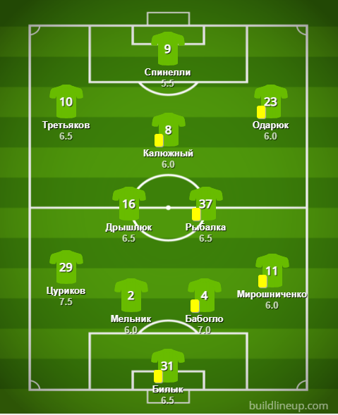 «Александрия»: Билык, Мельник, Бабогло, Цуриков, Мирошниченко, Дрышлюк (Устименко, 88), Рыбалка (Копына, 57), Третьяков, Калюжный, Одарюк (Кожушко, 46), Спинелли