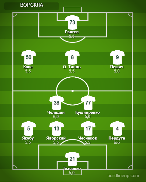 «Ворскла»: Ткаченко - Пердута (Павлюк, 8, Амилькар, 39), Чеснаков, Яворский, Якубу - Кушниренко, Челядин (Хрипчук, 87) - Пешич, О. Тилль, Кане - Рангел.