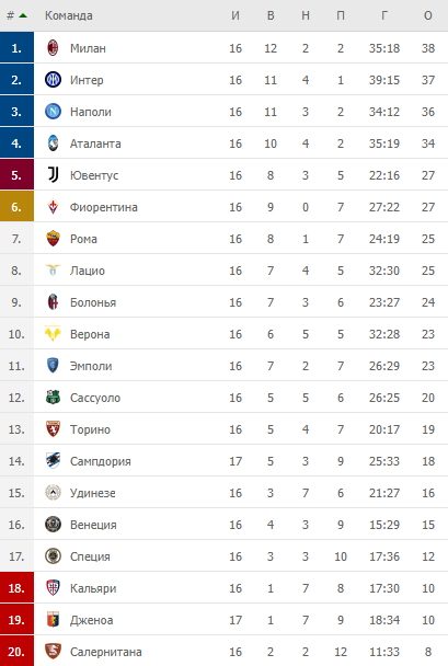 После 17 матчей красно-синие занимают предпоследнее 19-е место в турнирной таблице, имея в активе всего лишь 10 очков. У «Дженоа» при Шевченко 4 поражения и 1 ничья, при разнице мячей – 1:10.