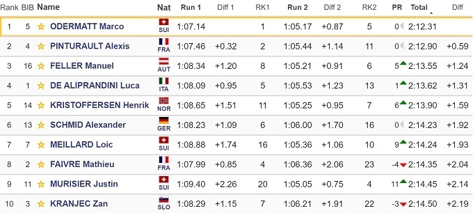 Швейцарский горнолыжник Марко Одермат выиграл гигантский слалом на этапе Кубка мира во французском Валь д’Изере. Он в упорной борьбе опередил хозяина соревнований Алексиса Пинтуро и одержал свою третью победу в сезоне.