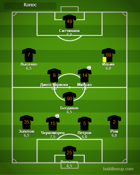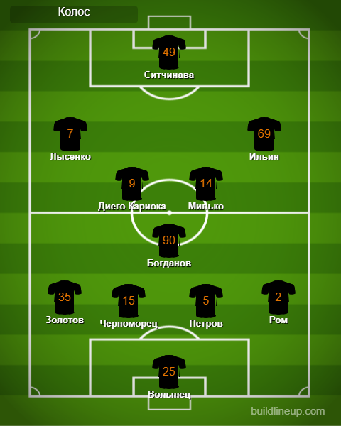 «Колос»: Волынец, Золотов, Петров, Черноморец, Ром, Богданов (Костышин, 77), Милько, Ильин, Диего Кариока, Лысенко (Нуриев, 55), Ситчинава (Ренан, 64).