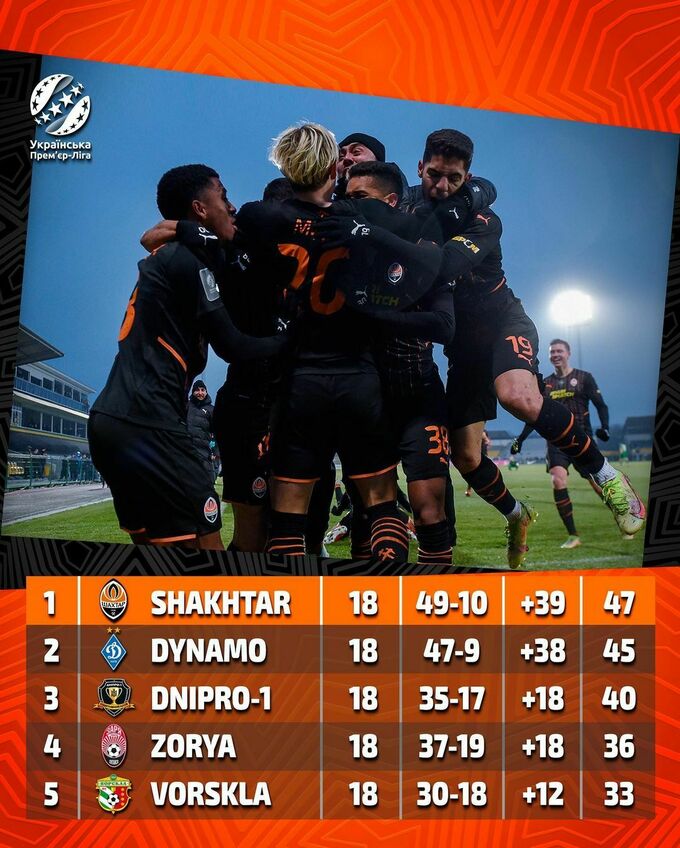 Турнирная таблица УПЛ. Шахтер уходит на паузу зимним чемпионом