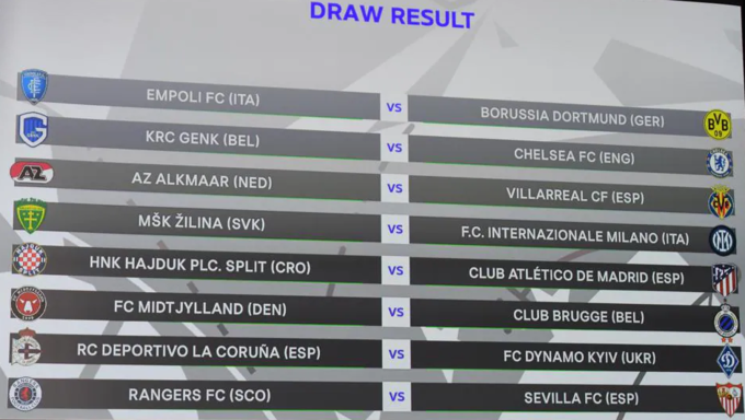 8 победителей Пути чемпионов получили в соперники команды, которые финишировали вторыми на групповой стадии Пути Лиги чемпионов, среди которых и киевское «Динамо» U-19.