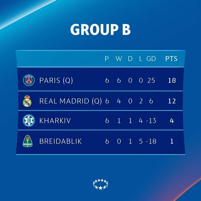 В группе B харьковский «Жилстрой-1» в 6-м туре проиграл на выезде «Реалу» (0:3) закончил группу третьим и выбыл из турнира, пропустив вперед французский «ПСЖ» и испанский «Реал».