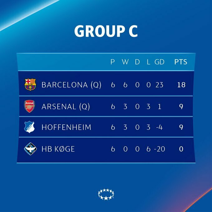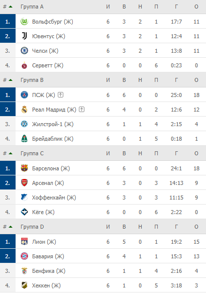 16 декабря завершились матчи группового раунда женской Лиги чемпионов.