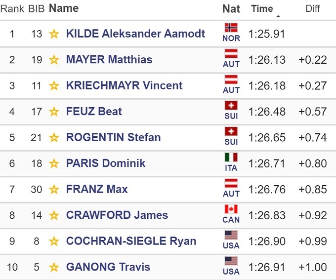 Для Килде это третья победа в нынешнем сезоне. Ранее он оформил победный дубль в Бивер Крике.