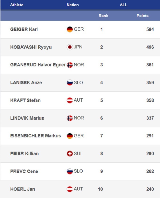 Немец и японец набрали по 180 очков, но в целом Рёю оставил более сильное впечатление в Энгельберге. Если Гайгер в субботу победил с минимальным преимуществом в 0,8 балла, то Кобаяси в воскресенье привез своему сопернику более 10 баллов, к тому же выиграв как пятничную, так и воскресную квалификации.