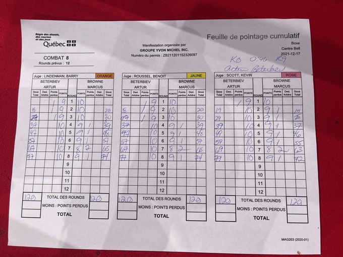 После этого инцидента Артур, которому врач разрешил продолжить бой, активизировался и отправил соперника в нокдаун в 7-м раунде. А спустя два раунда бой был завершен