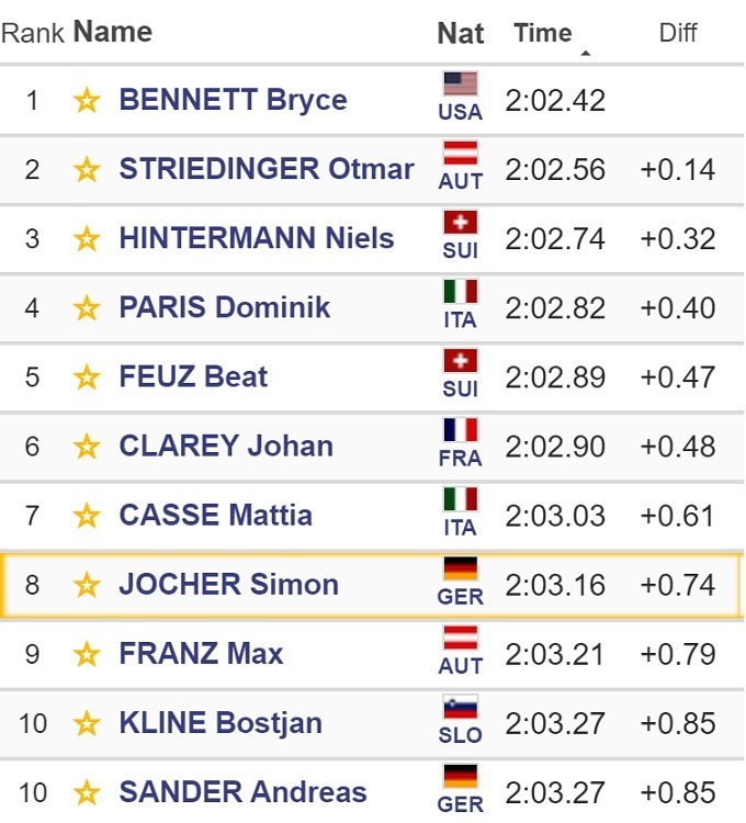 Американский горнолыжник Брайс Беннетт сенсационно выиграл скоростной спуск на этапе Кубка мира в Валь Гардене. Для него это первая в карьере победа на Кубке мира.