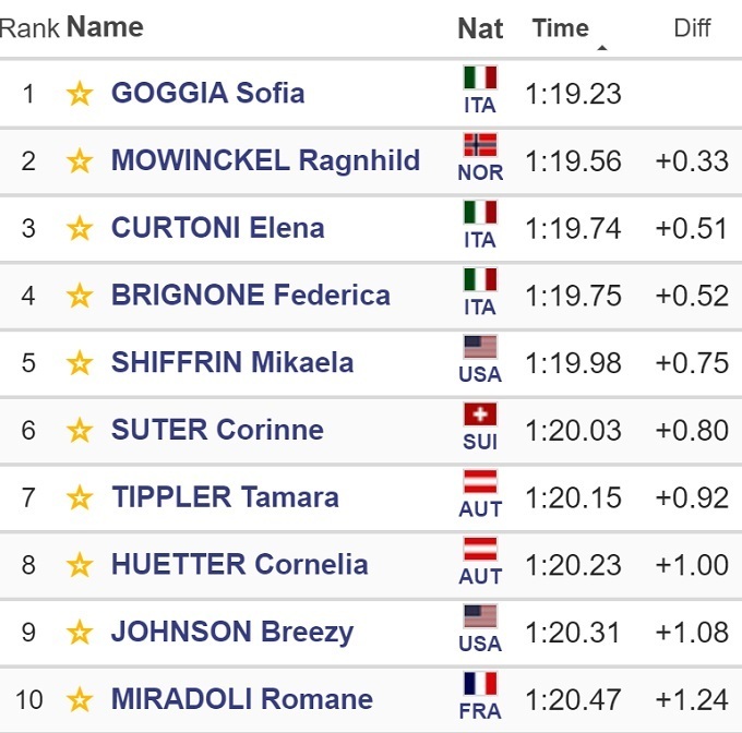 Вчера Годжа выиграла и скоростной спуск в Валь д’Изере.
