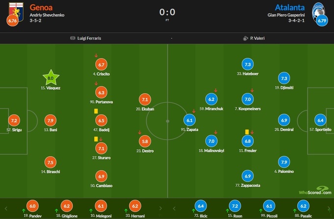 Лучшим игроком матча признан защитник «Дженоа» Йохан Васкес - 8.0 балла.