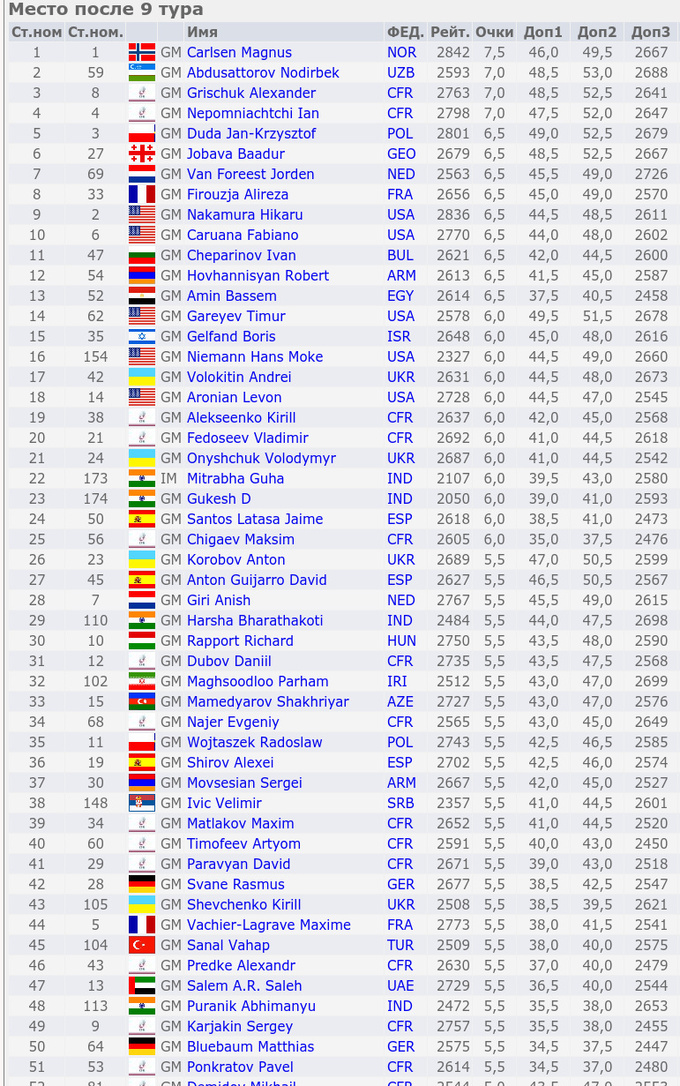 Лидеры после 9 туров (турнирная таблица)