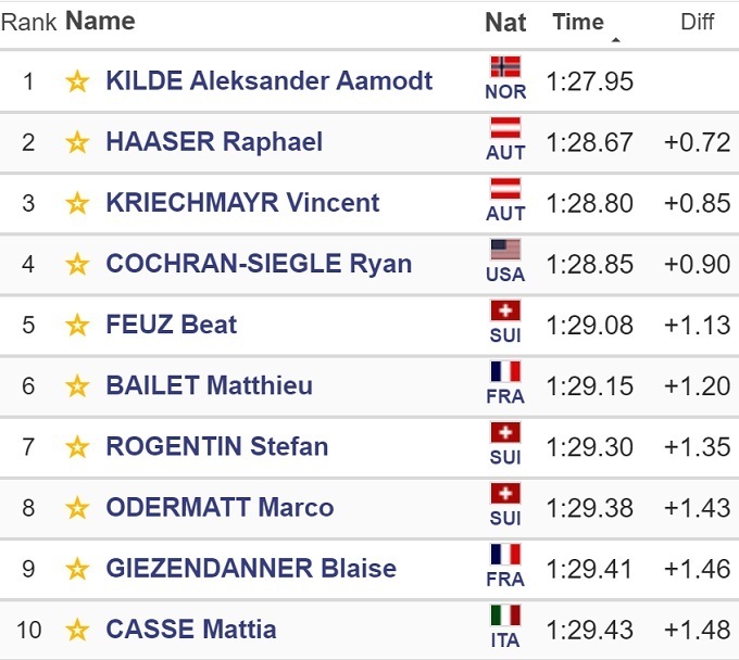 Норвежский горнолыжник Александер Омодт Килде выиграл супергигант на этапе Кубка мира в итальянском Бормио. Для него это третья победа в супергиганте подряд.