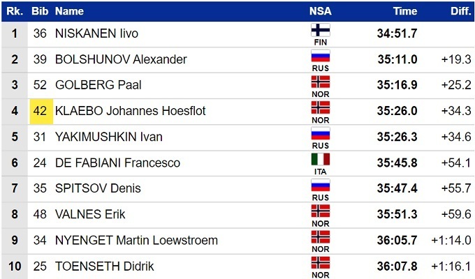Тур де Ски. Победа Нисканена, Клэбо остался лидером