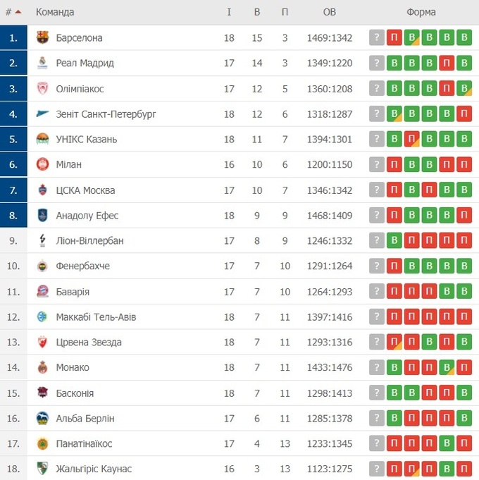 Евролига. Барселона уступила Басконии, победы УНИКСа и Зенита