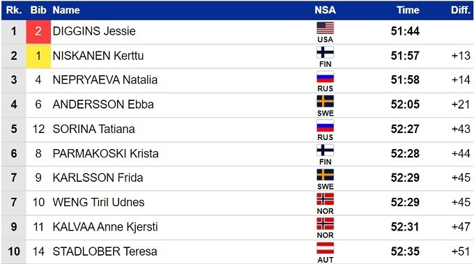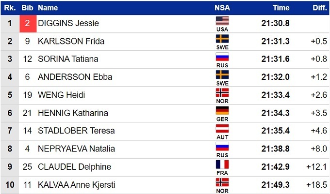 Тур де Ски. Диггинс выиграла третий этап и вернула себя лидерство