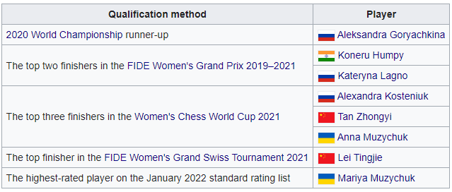 Турнир претенденток 2022 пройдет в первой половине года, даты пока не обнародованы. Его победительница получит право на матч за титул чемпионки мира против китаянки Цзюй Вэньцзюнь.