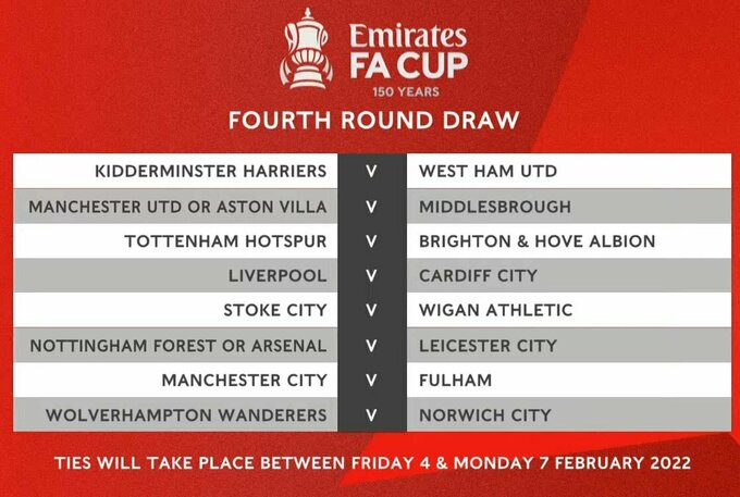 В воскресенье, 9 января, состоялась жеребьевка 4-го раунда Кубка Англии.