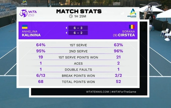 Для Калининой это была шестая победа над представительницами топ-50. Всего таких матчей украинка сыграла 20.