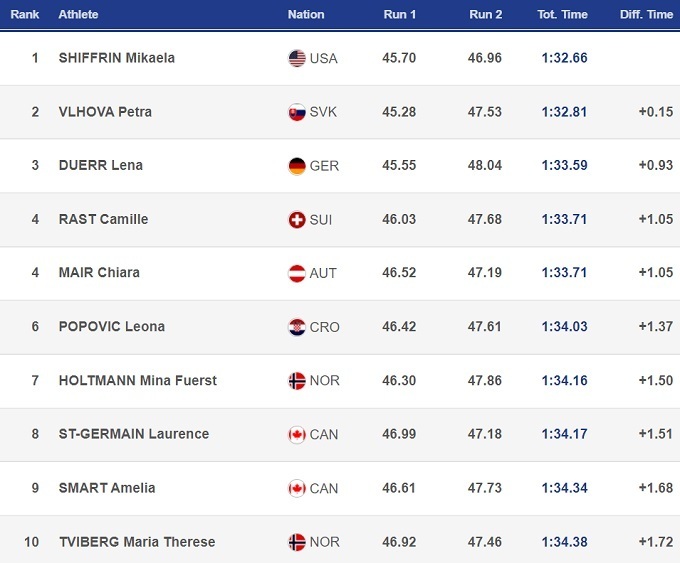 Второй стала Петра Влхова. Это позволило словачке досрочно обеспечить себе Малый Кубок мира в слаломе.
