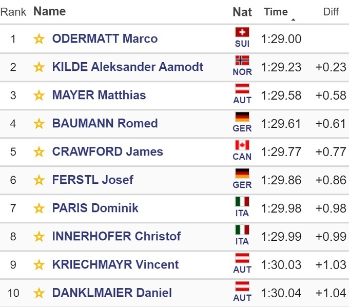 Лидер Кубка мира Марко Одерматт выиграл супергигант на домашнем этапе в швейцарском Венгене. Он опередил норвежца Александера Омодта Килде и австрийца Маттиаса Майера.